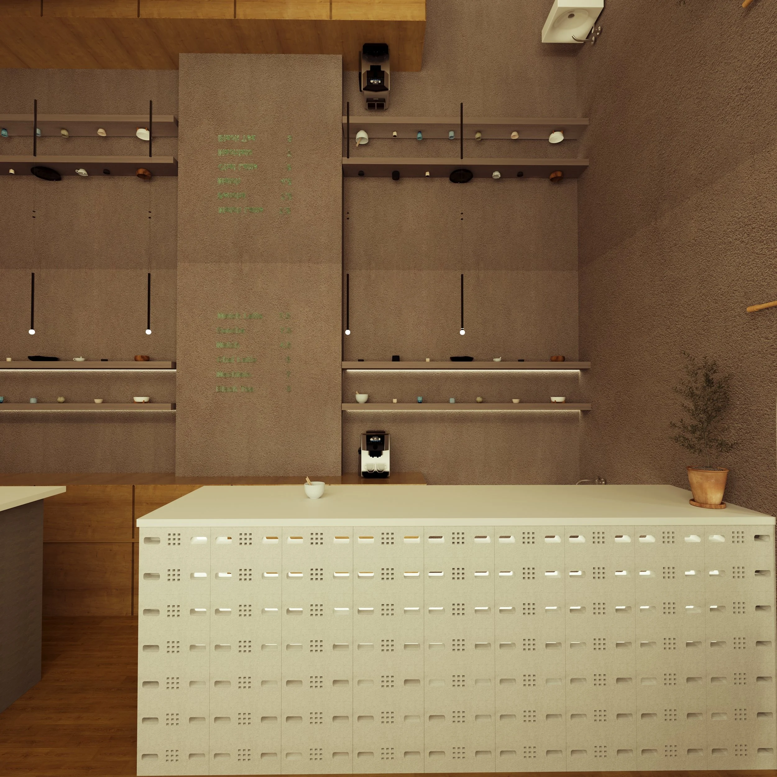 The owners of a new tea store wanted to open their shop in Helsinki and create a minimal, wabi-sabi–inspired space to serve their customers green tea based products. The result is an atmospheric interior that uses materials such as brick, plaster, wood, and metal to emphasize natural textures, reflecting the essence of their products.